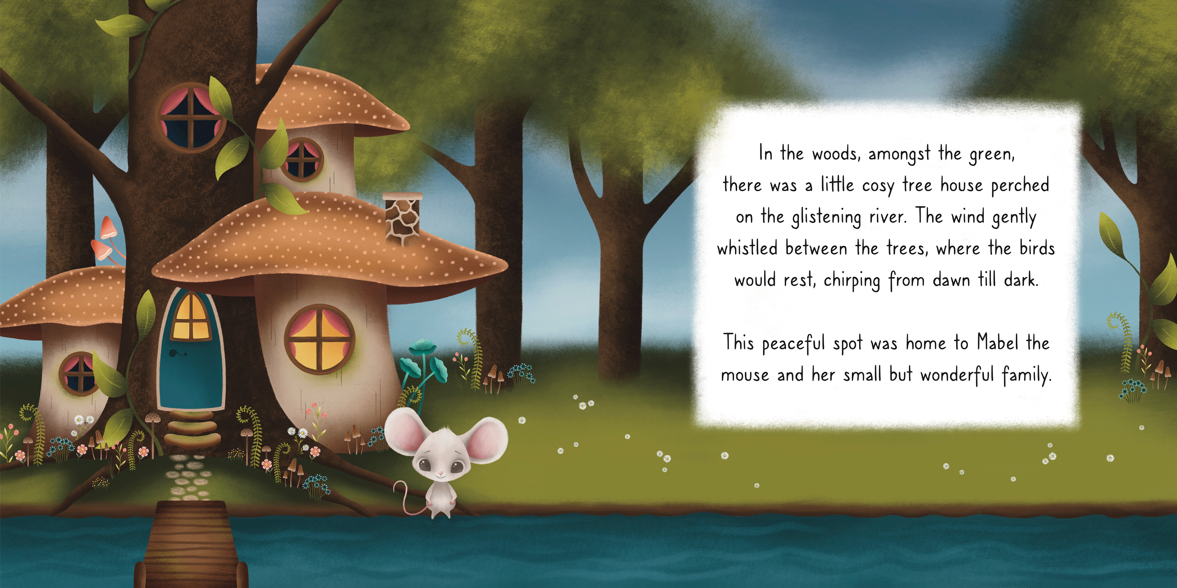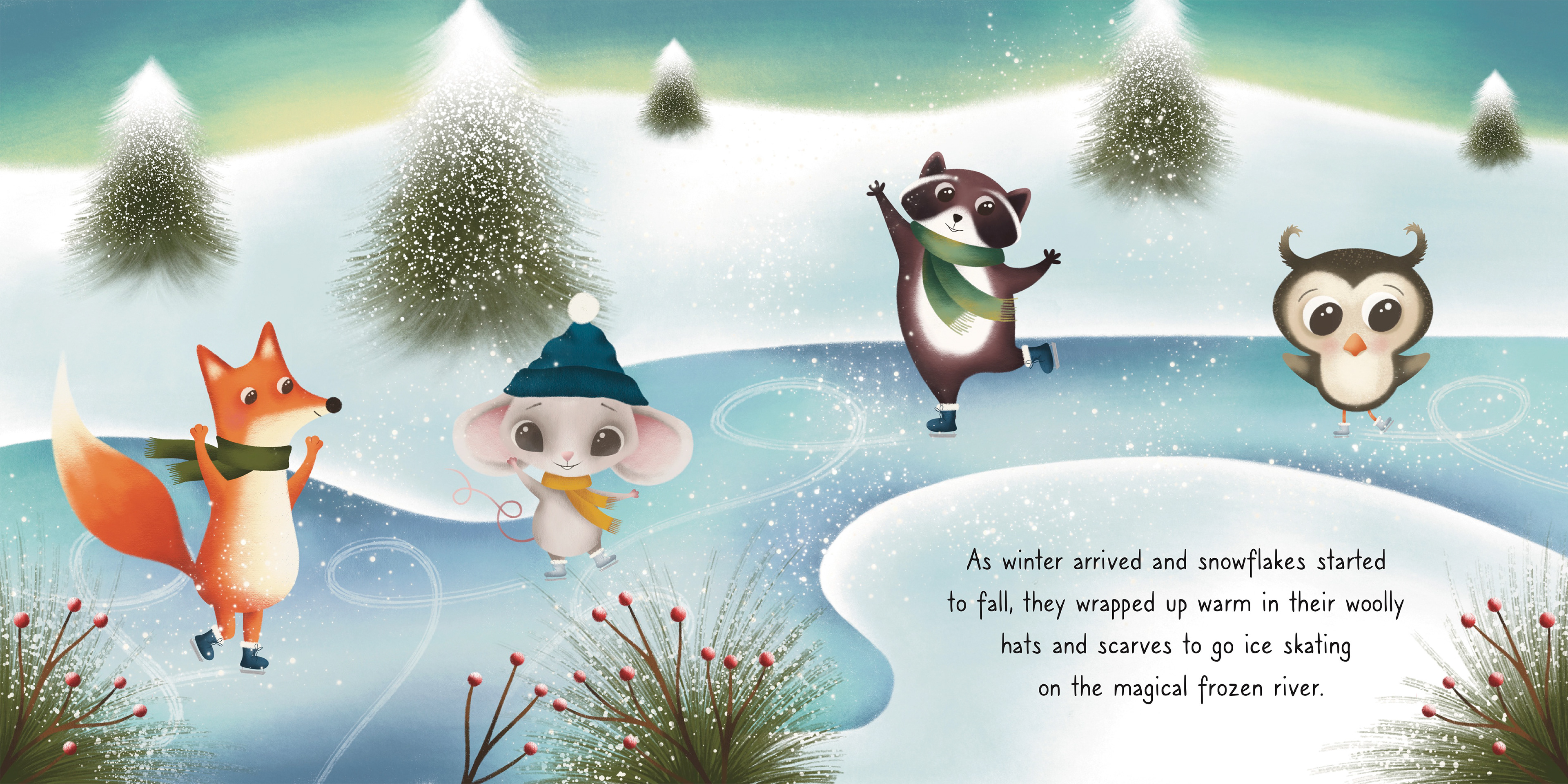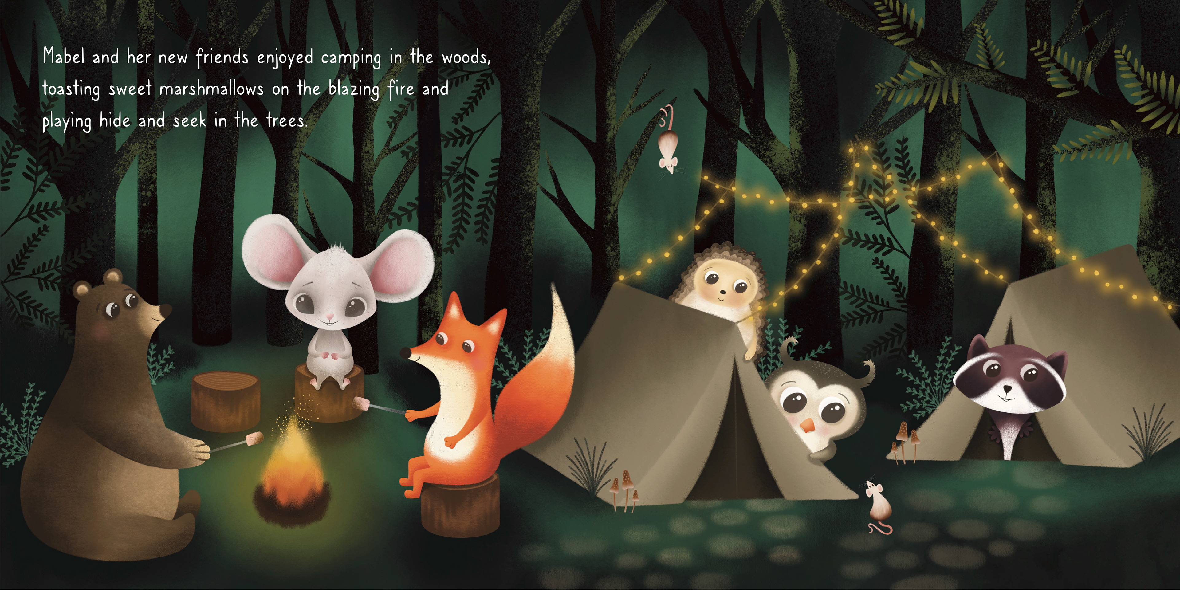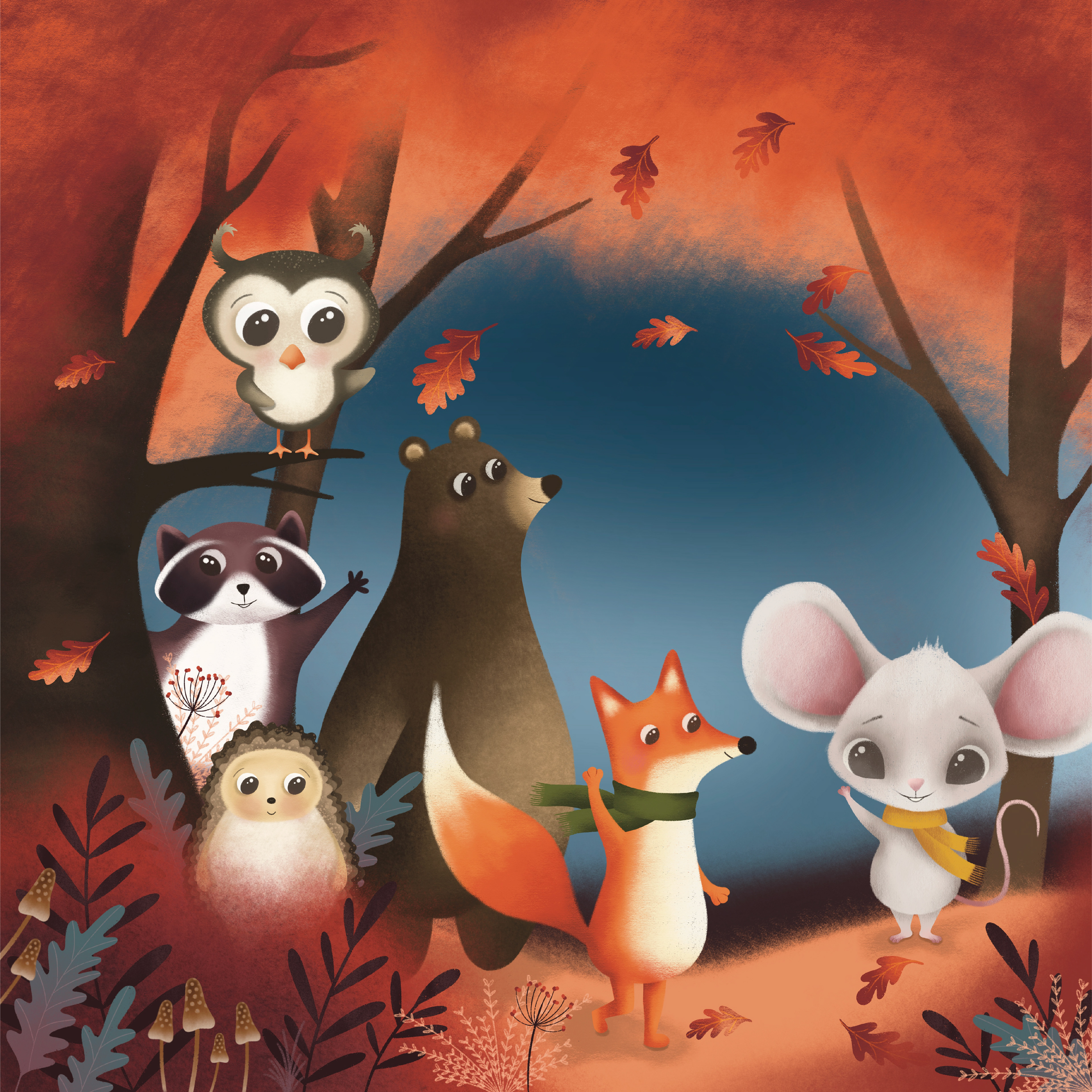 Children’s book illustrations featuring whimsical woodland characters, soft textures, and gentle storytelling set in a magical forest world.